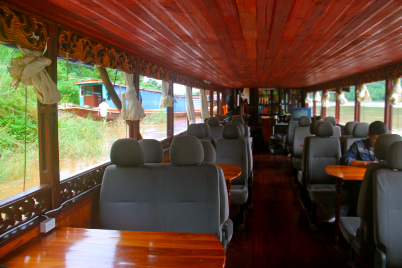 The slow boat to Pak Beng has mini-van seats for all of its passengers as well as a western-style toilet and a snack bar. It made the 7 hour trip a bit more comfortable compared to sitting 4 hours on a wooden bench on our first slow boat ride to Muang Khua .